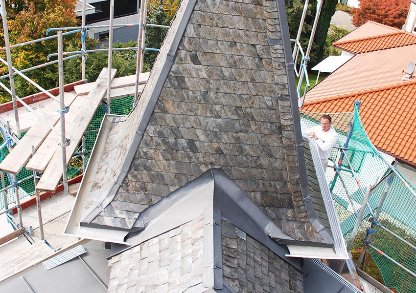 Nach sorgfältiger Planung in Absprache mit dem Bauherrn begannen wir mit der fachgerechten Umsetzung. Gerade die Arbeiten an alten und hier auch noch denkmalgeschützten Gebäuden steckt manchmal voller Überraschungen, eine solide Vorplanung und auch sehr genaue Detailkenntnis der Bausubstanz ist hier besondes wichtig. Mit dem Einbau von drei grossen Dachfenstern mit Austritt kommt sehr viel Licht in den dadurch auch optisch deutlich grösseren Raum, zugleich erfreut sich der Bauherr wie gewünscht einer schönen Aussicht.